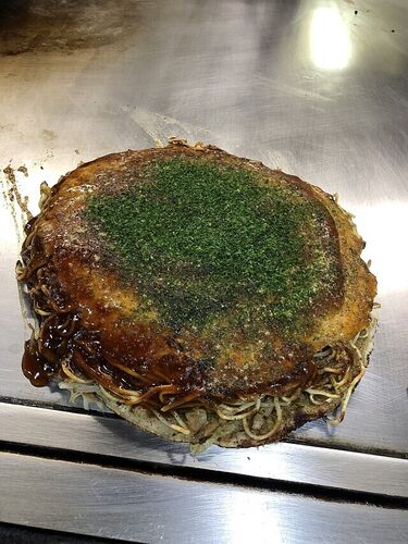 なわないを後にし、お好み焼きのハシゴ。 近くにある人気店の広島まるかじり 中ちゃんへ向かう。 19時頃通りかかったときは行列ができていたが、21時過ぎだと並ばずに入れた。
