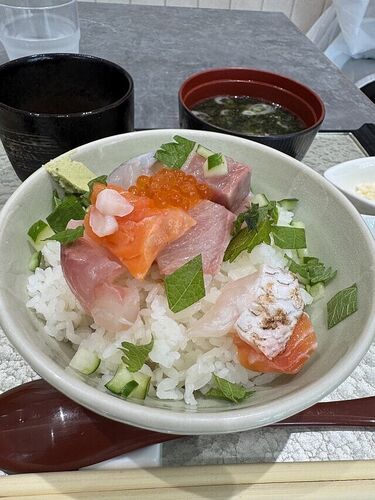 敦賀合宿2日目の朝食は、宿泊先のホテルグランビナリオ1階にあるレストラン「いざり火」で。 和食、洋食、海鮮丼と選べるらしく、事前に海鮮丼をチョイス。