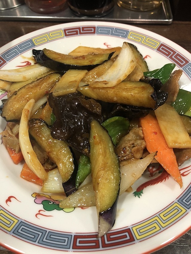 大抵は、タンメンかサンマーメンに餃子という展開が多いのだが、今回はナスと豚肉のピリ辛炒めを定食にしてみた。
