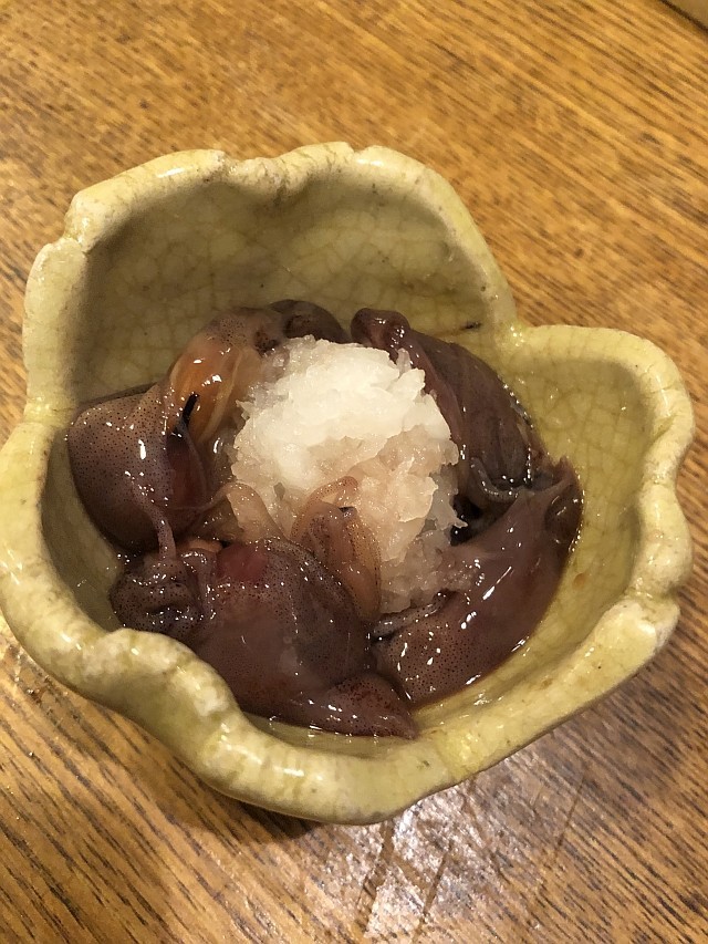 このあたりからは、ホタルイカ沖漬け、名物の刺身こんにゃくなど、渋いアテを肴に。