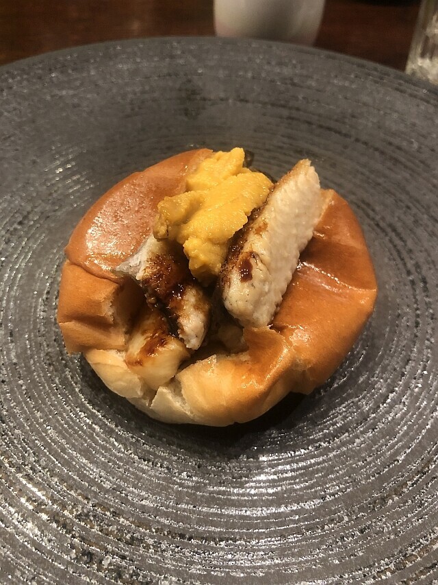桃の甘さと鰻の脂感と雲丹のコクが絶妙に交じり合って、絶品。