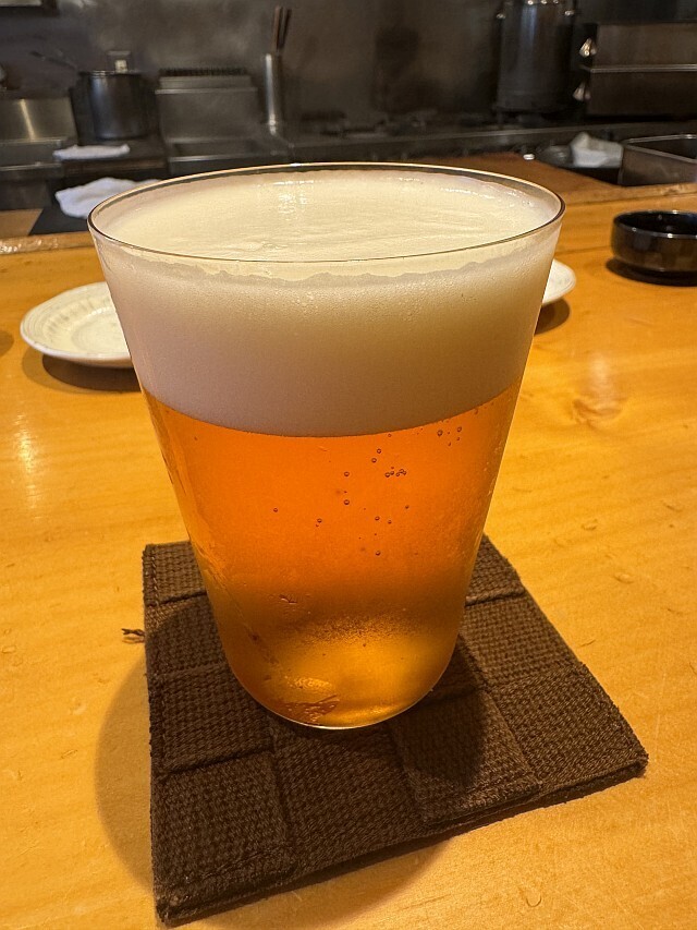 グラスビールを飲みながら、居酒屋的な料理を楽しむ。