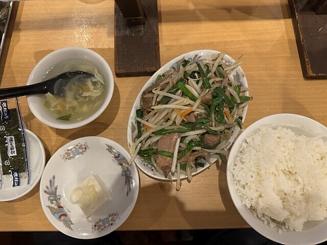 平日は日替わり定食があってお得に食べられるが、毎週水曜日はニラレバ炒め。