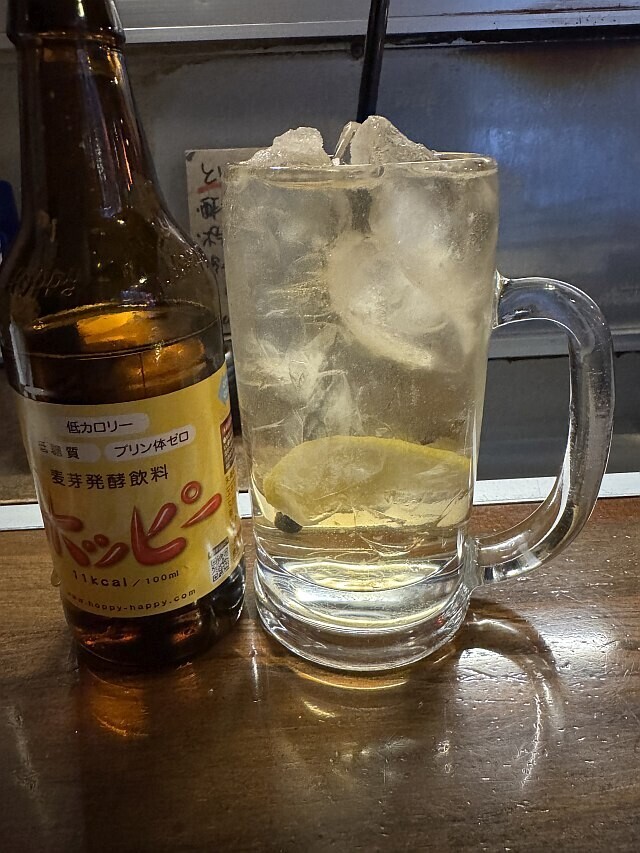 ホッピー白を注文したら、ジョッキに「中」が7割近く入っている!