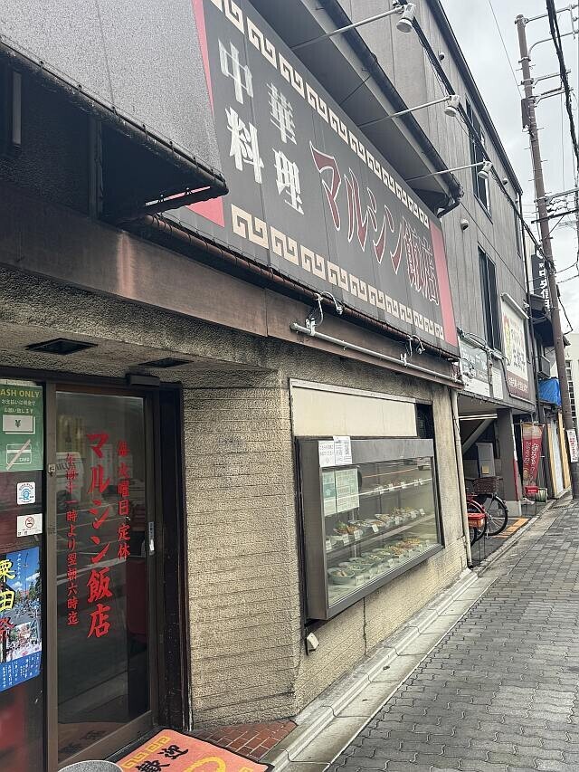 一澤信三郎帆布のお店の通り沿いにある、町中華のマルシン飯店。